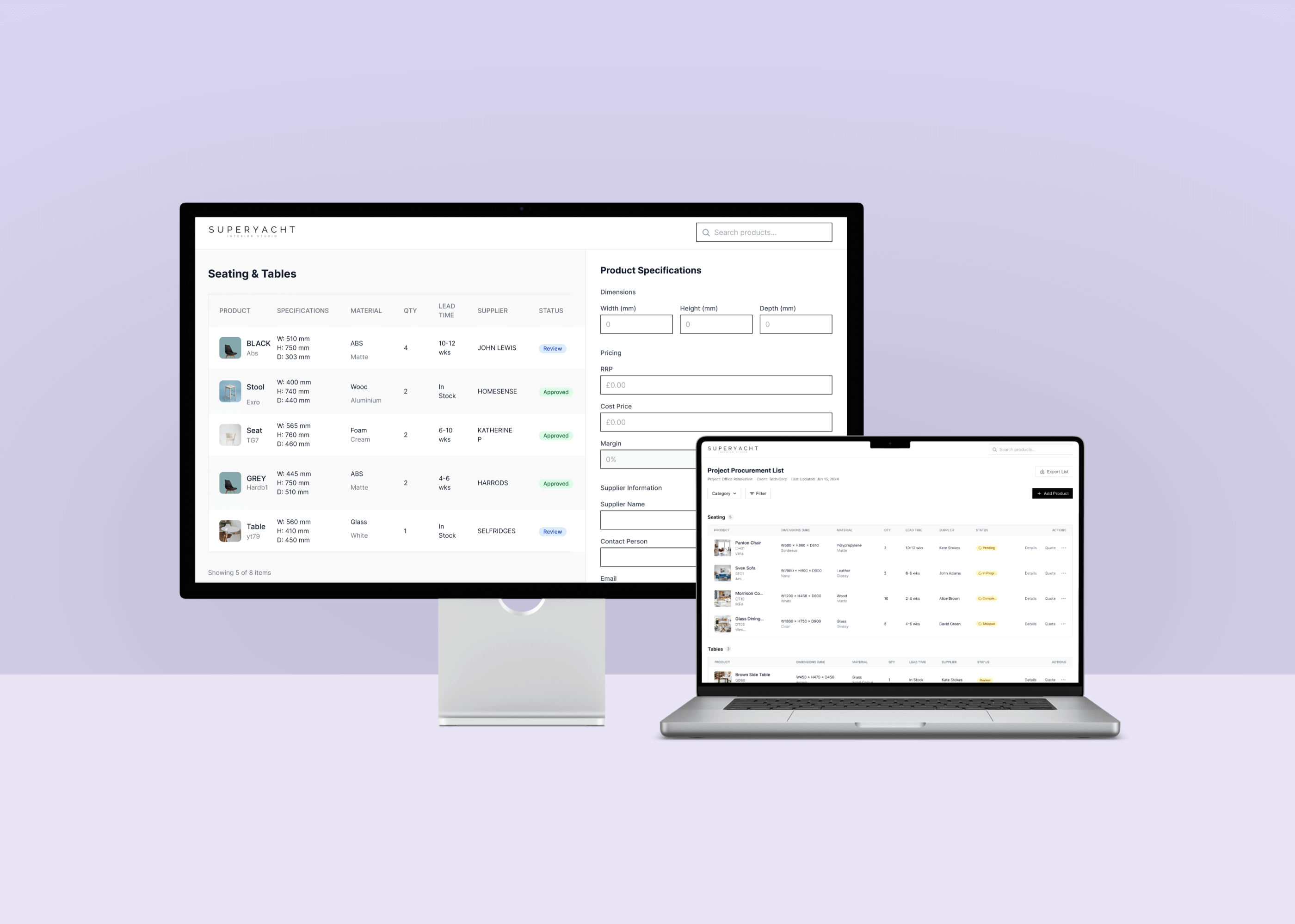 We designed and built a digital moodboard and project briefing software for an interior design studio specialising in high-end super yachts. The platform features a drag/drop image moodboard, client manager, team access roles and project management.